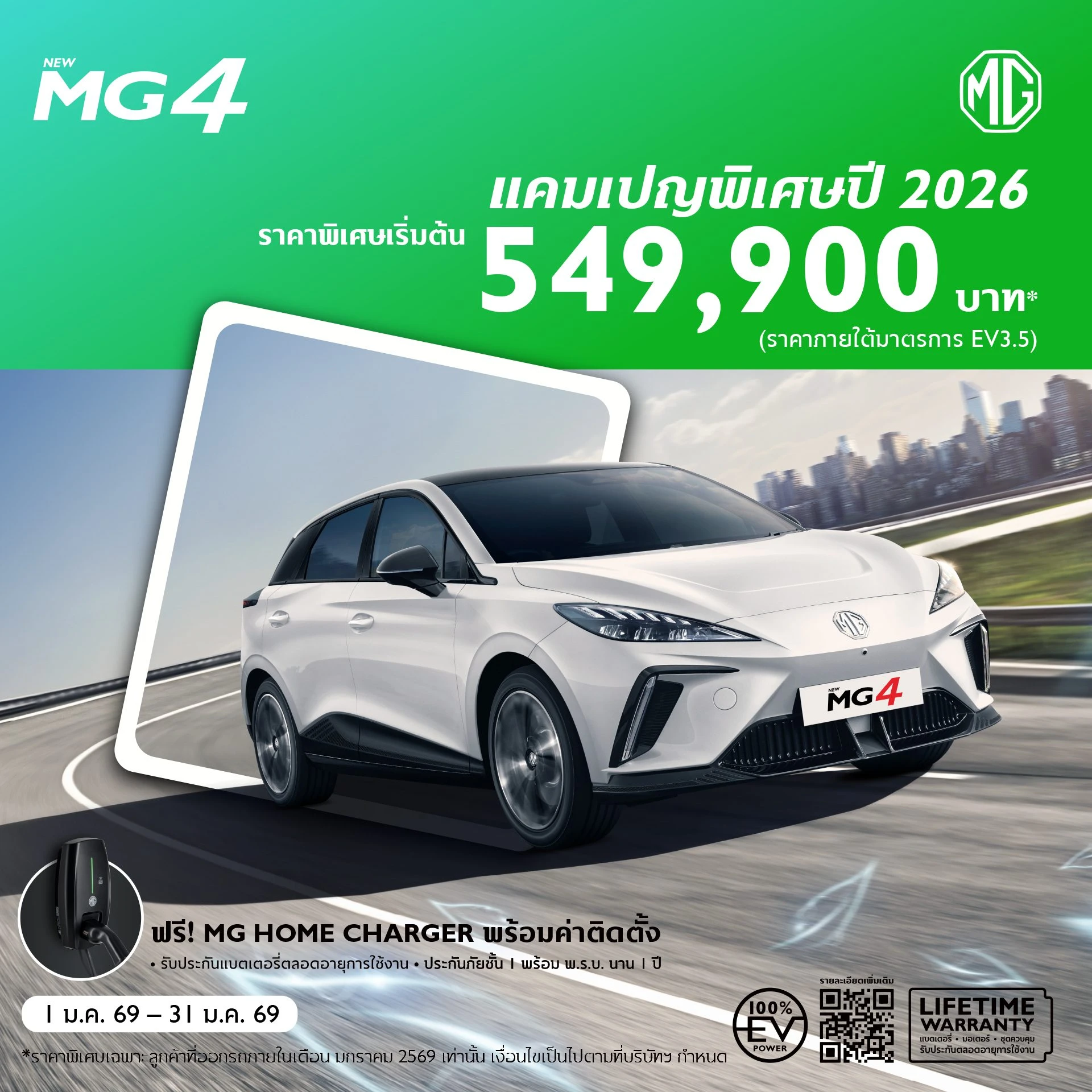 - ฟรี MG HOME CHARGER จำนวน 1 ชุด พร้อมค่าติดตั้ง