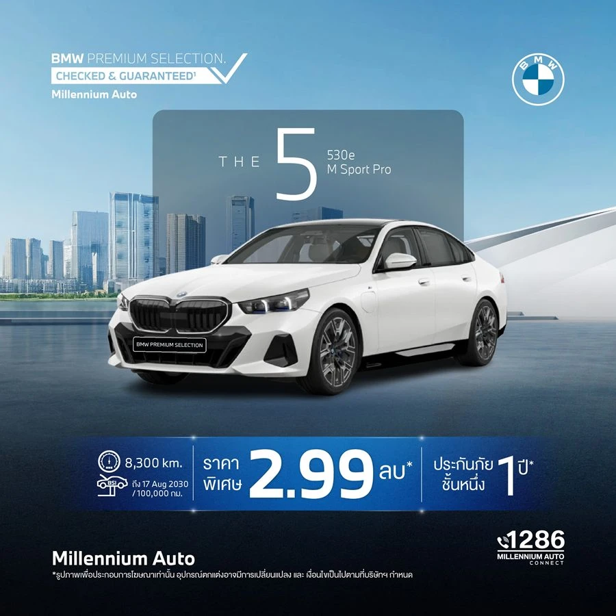 JOY OF CHOICE – EXECUTIVE CAR DAY จัดทัพยนตรกรรมผู้บริหาร BMW Premium Selection ที่ผ่านการตรวจสอบและรับรองคุณภาพตามมาตรฐาน บีเอ็มดับเบิลยู กรุ๊ป ประเทศไทย ให้ลูกค้าได้เป็นเจ้าของภายใต้ข้อเสนอและราคาสุดพิเศษ พร้อมส่งมอบทันที ตอบโจทย์ทั้งการใช้งาน ภาพลักษณ์ และไลฟ์สไตล์ในทุกวัน ระหว่างวันที่ 16–18 มกราคม 2569 ณ โชว์รูม บีเอ็มดับเบิลยู มิลเลนเนียม ออโต้ พระราม 4