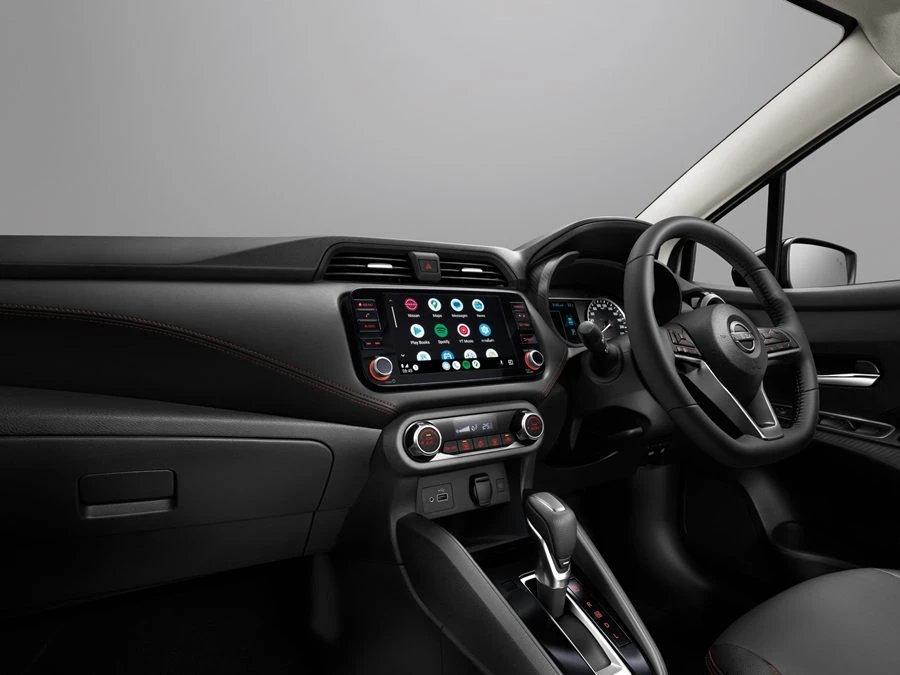 นิสสัน อัลเมร่า รุ่นปี 2026 มีรูปลักษณ์ที่ทันสมัย ปราดเปรียวยิ่งขึ้นด้วยกระจังหน้าแบบใหม่สีดำ กันชนด้านล่างทั้งหน้าและหลังสีดำ สำหรับในรุ่น VL สีทูโทนมีมือจับประตูสีดำเข้ากับหลังคาดำ รวมทั้งเพิ่มความเข้มสไตล์สปอร์ตในรุ่น V และ VL ด้วยชิ้นส่วนตกแต่งไฟหน้าสีดำ