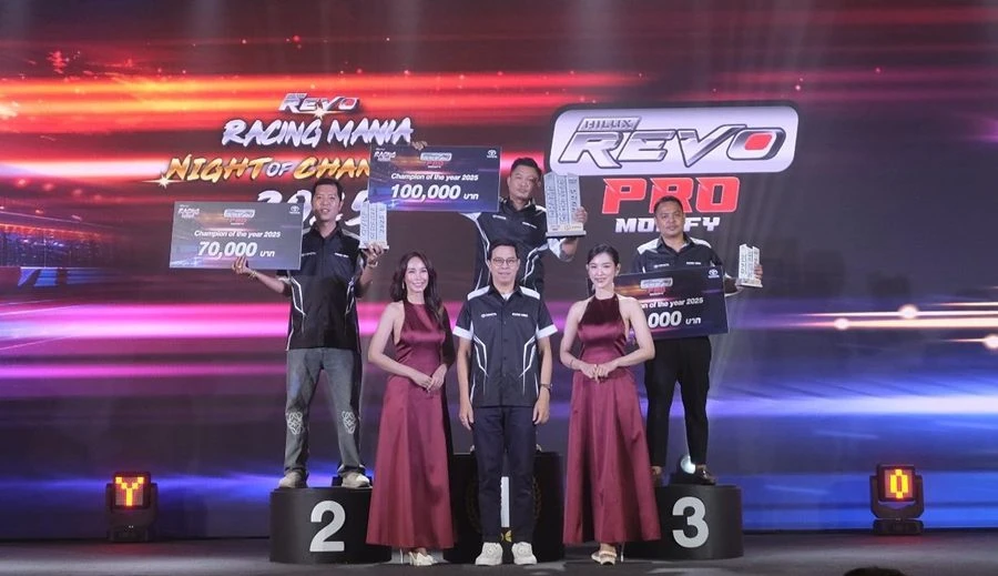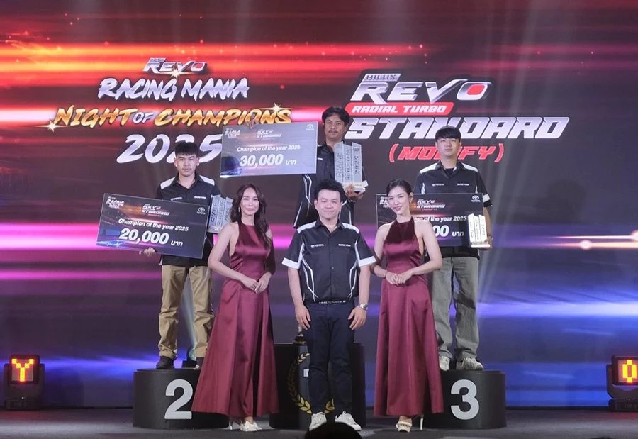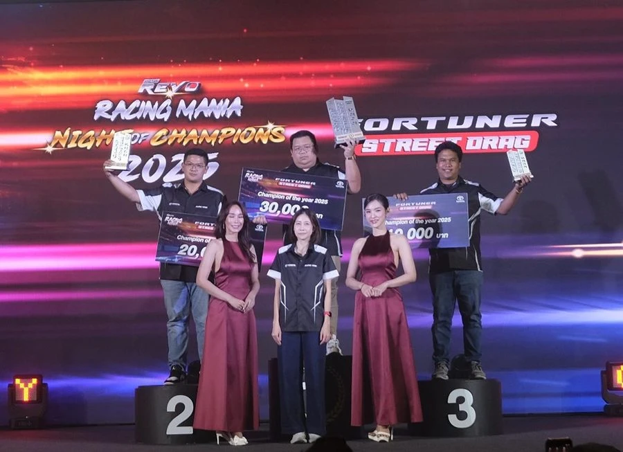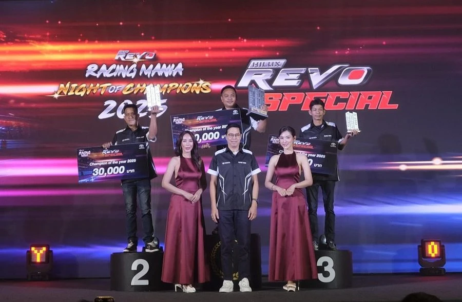 นายณัทธร ศรีนิเวศน์ ผู้ช่วยกรรมการผู้จัดการใหญ่ บริษัท โตโยต้า มอเตอร์ ประเทศไทย จำกัด เป็นประธานในพิธีมอบรางวัลให้กับผู้ชนะที่มีคะแนนสะสมรวมสูงสุดประจำปี 2025 ในการแข่งขันรถยนต์ทางตรงรูปแบบ Drag Racing ในงาน HILUX REVO RACING MANIA NIGHT OF CHAMPIONS 2025 ณ TOYOTA ALIVE บางนา กม.3 เมื่อวันที่ 29 มกราคม 2569