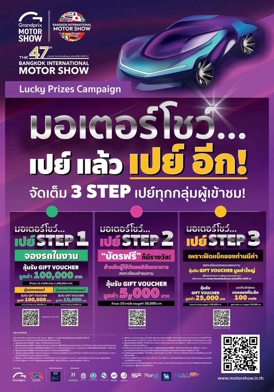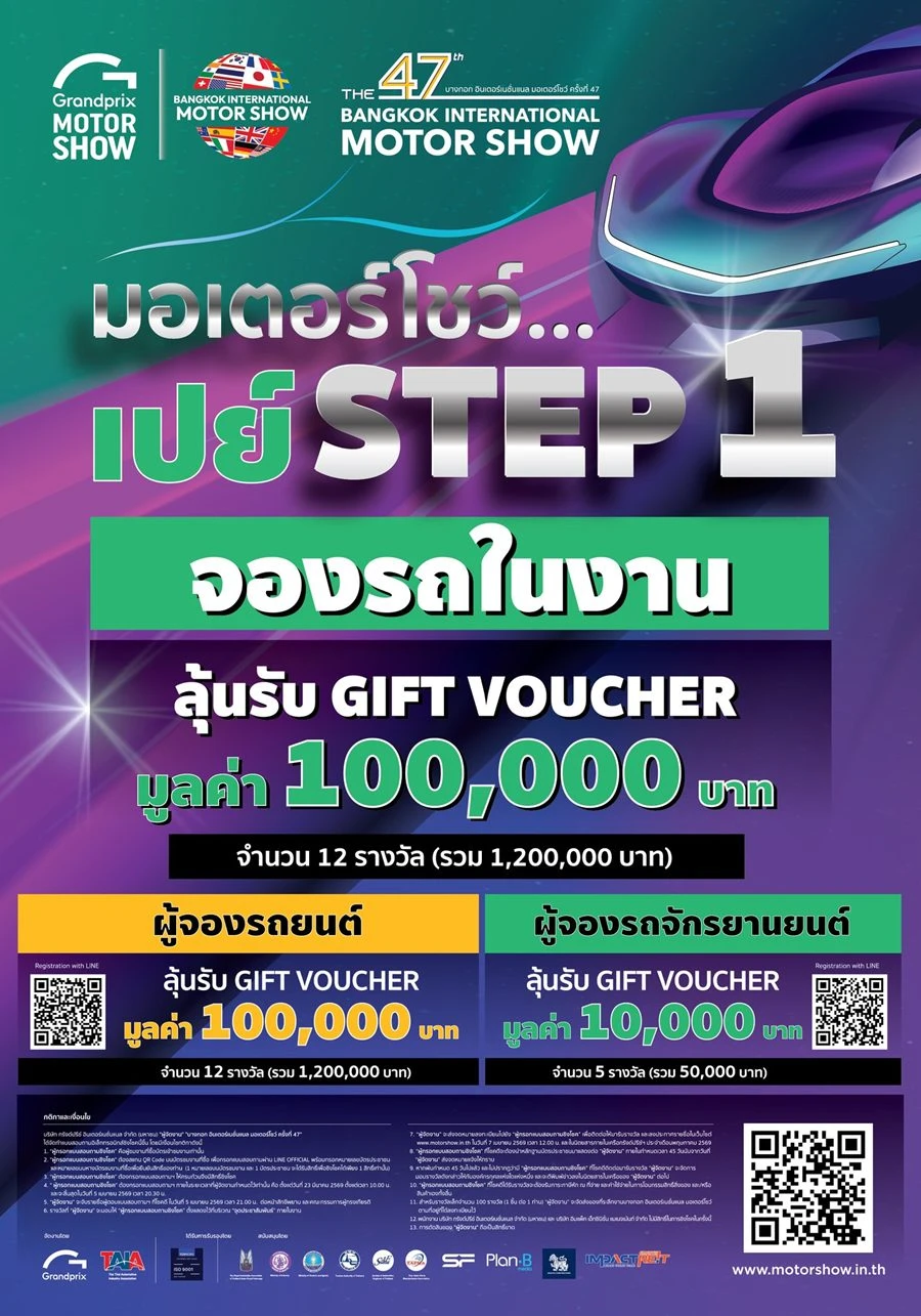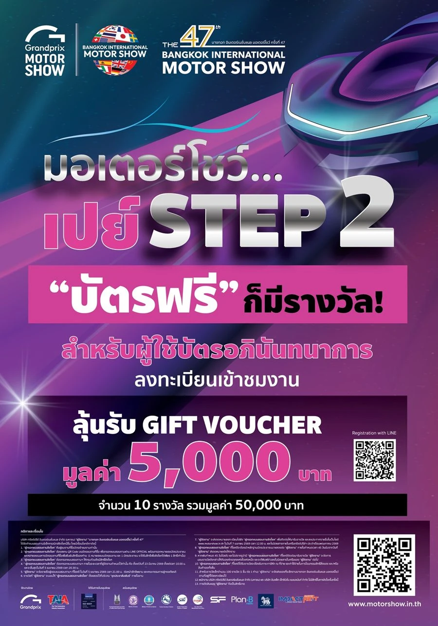 ขอเชิญชวนประชาชนและผู้สนใจทุกท่าน ร่วมสัมผัสนวัตกรรมยานยนต์ที่ตอบโจทย์ทุกไลฟ์สไตล์ และยกระดับคุณภาพชีวิตแห่งอนาคต ได้ที่ งานบางกอก อินเตอร์เนชั่นแนล มอเตอร์โชว์ ครั้งที่ 47 ระหว่างวันที่ 25 มีนาคม – 5 เมษายน 2569 ณ อิมแพค ชาเลนเจอร์ ฮอลล์ 1–3 เมืองทองธานี