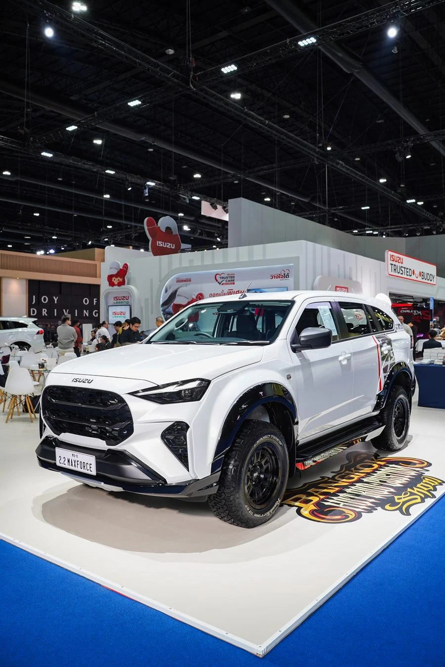 นำทัพโดย New! ISUZU V-CROSS 4x4 “THE ONE & ONLY” และ MU-X “THE NEXT PEAK” 4WD ครั้งแรกกับเครื่องยนต์ 2.2 Ddi MAXFORCE ในระบบขับเคลื่อนสี่ล้อ ที่เปิดตัวเมื่อปลายเดือนกุมภาพันธ์มาโชว์ภายในงาน พร้อมด้วยไฮไลต์สำคัญอย่าง รถปิกอัพอีซูซุ ดีแมคซ์ รถแข่งต้นแบบที่จะใช้ในรายการ “ISUZU CHALLENGE THAILAND 2026” และ ISUZU V-CROSS 4x4 เครื่องยนต์ 2.2 Ddi MAXFORCE ที่อีซูซุได้ร่วมมือกับ WILD ผู้ผลิตชิ้นส่วนชื่อดังของไทยในการออกแบบอุปกรณ์ตกแต่งพิเศษรอบคันโดยเฉพาะ และรถยนต์นั่งอเนกประสงค์ MU-X “THE NEXT PEAK” 2.2 Ddi MAXFORCE รุ่น RS สี Dolomite White Pearl มาตกแต่งเพิ่มความดุดันขั้นสุดในสไตล์ Top Secret SPL ครั้งแรกของโลกกับการเผยโฉมโปรเจกต์ "TOP Secret The First PPV” และ รถยนต์นั่งอเนกประสงค์ MU-X “THE NEXT PEAK” 2.2 Ddi MAXFORCE รุ่น Active สี Dolomite White Pearl ที่ร่วมมือกับ Bangkok Hot Rod Custom Show ผู้จัดงานประกวด Custom Car ที่ใหญ่ที่สุดในประเทศไทย มาพลิกโฉมสะกดทุกสายตาด้วยชุดแต่งพิเศษคอนเซปต์ "Premium Tough"