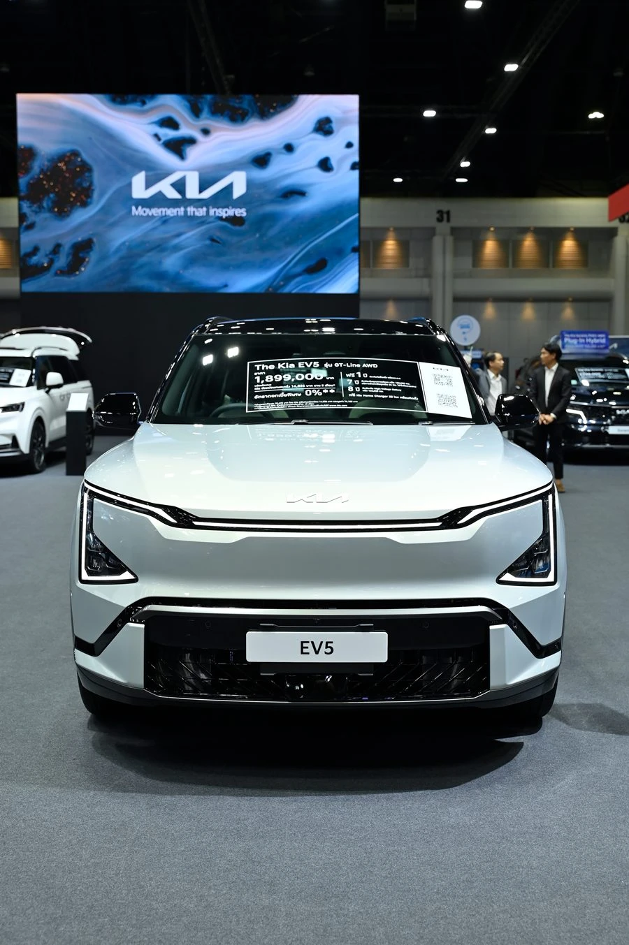 The Kia EV5 – SUV ขนาดกลางไฟฟ้า 100% – โดดเด่นด้วยการตกแต่งภายในที่กว้างขวาง ดีไซน์ทันสมัย ลักษณะการขับขี่แบบไดนามิก และความอเนกประสงค์เต็มรูปแบบ ตอบสนองทุกไลฟ์สไตล์ของครอบครัวยุคใหม่ได้อย่างสมบูรณ์แบบ มีให้เลือก 4 รุ่นย่อย ได้แก่ The Kia EV5 Air, The Kia EV5 Earth Long Range, The Kia EV5 Earth Exclusive AWD และ The Kia EV5 GT-Line AWD