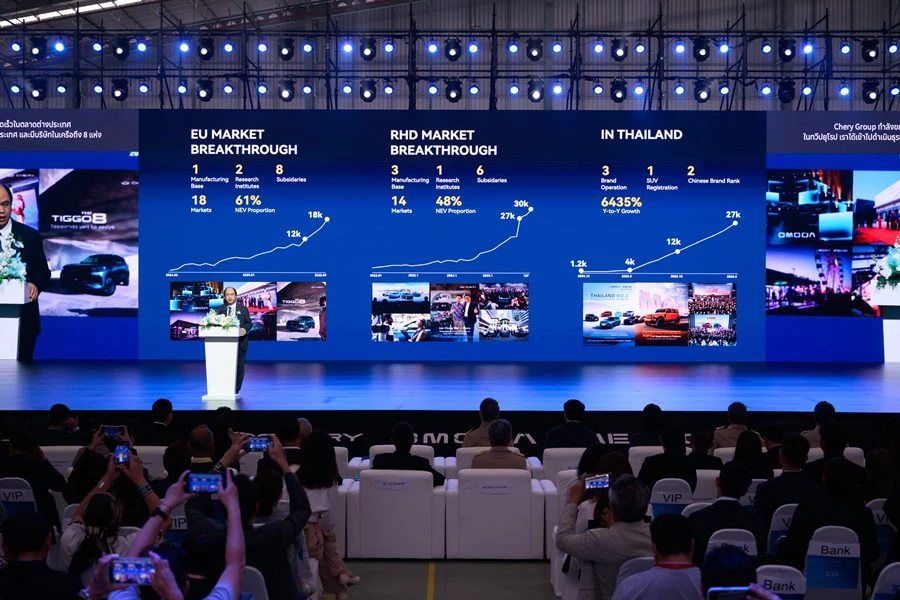 การขยายตัวในระดับสากลยังคงเติบโตอย่างต่อเนื่อง โดยในยุโรป Chery Group ได้ดำเนินธุรกิจมากกว่า 18 ประเทศ และในตลาดพวงมาลัยขวาทั่วโลก ครอบคลุม 14 ประเทศ พร้อมสัดส่วนรถยนต์พลังงานใหม่ที่เพิ่มขึ้นอย่างต่อเนื่อง สำหรับประเทศไทย ปัจจุบันกลุ่มบริษัทมีการดำเนินธุรกิจผ่าน 3 แบรนด์ ได้แก่ OMODA & JAECOO, ตามด้วย CHERY และล่าสุดคือ LEPAS สะท้อนถึงความเชื่อมั่นต่อศักยภาพระยะยาวของตลาดไทย