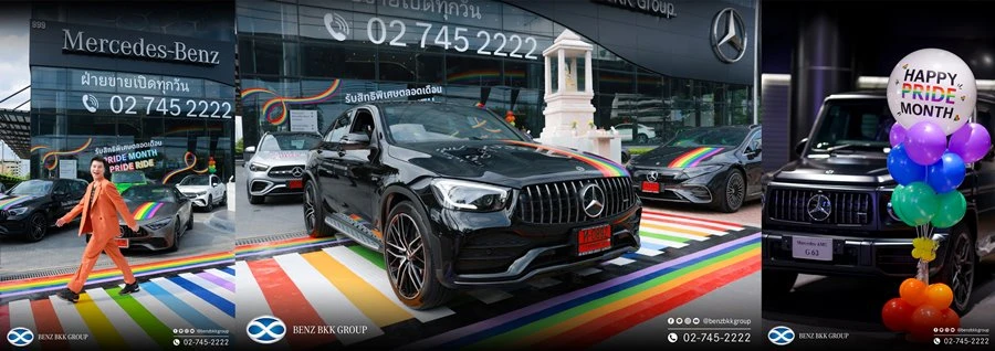 เบนซ์ บีเคเค กรุ๊ป-บางนา Mercedes-Benz Experience Center ที่ใหญ่ที่สุดในเอเชีย จับมือ สีพ่นรถยนต์ระดับพรีเมียม GLASURIT (สีนกแก้ว) ผู้นำด้านสีพ่นรถยนต์ระบบสีสูตรน้ำสุดยอดเทคโนโลยีสีจากประเทศเยอรมนี ร่วมเฉลิมฉลองเทศกาล Pride Month ด้วยสีสันแห่งความหลากหลาย ภายใต้แคมเปญ Pride Month Pride Ride ยกโชว์รูม และรถยนต์ เมอร์เซเดส-เบนซ์ คันโปรดให้เป็นพื้นที่ปลอดภัยสำหรับทุกคน พร้อมเนรมิตทางม้าลายสีรุ้ง เชื่อมต่อทุกพื้นที่ @โชว์รูม เบนซ์ บีเคเค บางนา ตลอดเดือนมิถุนายนนี้