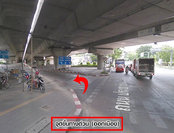 จากนั้นกลับรถใต้สะพานและขับตรงมาเรื่อยๆ จุดขึ้นทางด่วนจะอยู่ซ้ายมือ