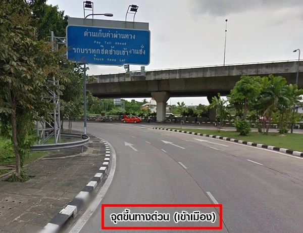จากนั้นกลับรถใต้สะพานและขับตรงมาเรื่อยๆ จุดขึ้นทางด่วนจะอยู่ซ้ายมือ