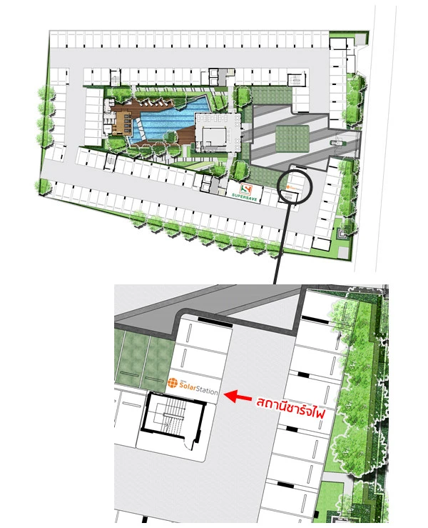 2) Solar Cells และสถานีชาร์จไฟฟ้าสำหรับรถอีวี (EV Charger) - ช่วยลดค่าส่วนกลางเพื่อประโยชน์ลูกบ้าน