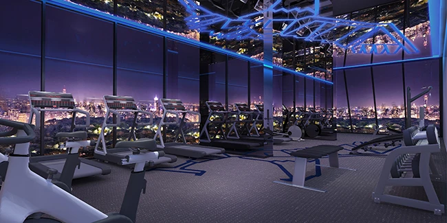 - ฟิตเนสห้องออกกำลังกายพร้อมอุปกรณ์ในห้องกระจกที่เปิดกว้างรับ Panoramic View