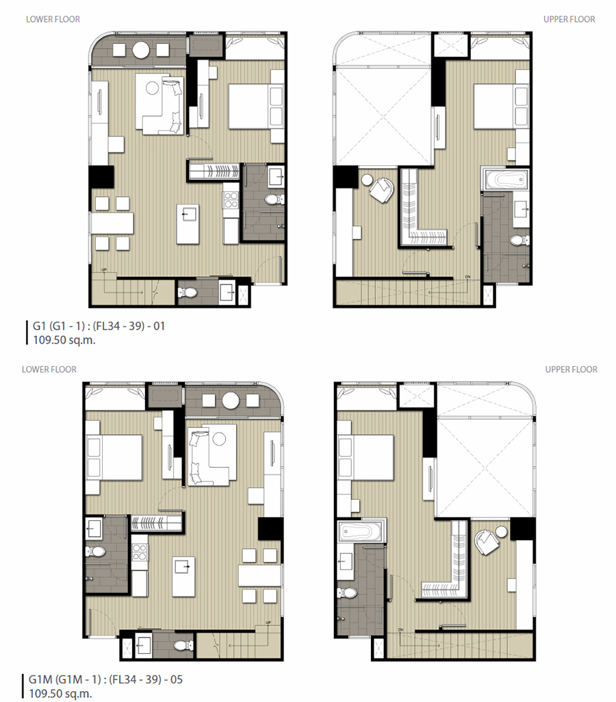 3) Duplex ขนาดพื้นที่ 62 ตร.ม., 73 ตร.ม., 78 ตร.ม., 81.50 ตร.ม. และ 109.50 ตร.ม.