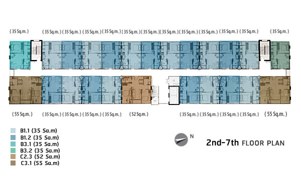 อาคาร C ชั้น 2-7 : จะเหมือนกัน คือเป็นพื้นที่พักอาศัยทั้งหมด มีจำนวนห้องพักอาศัย 24 ยูนิต/ชั้น