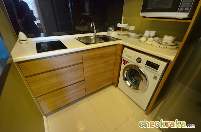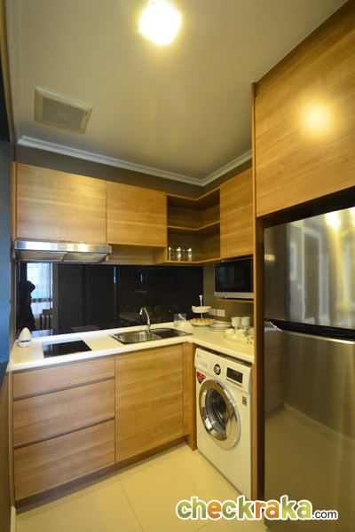 เก็บของและอุปกรณ์ทำครัวได้เยอะแยะ มีพื้นที่วางเครื่องซักผ้า