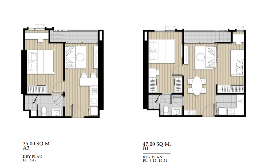2 ห้องนอน ขนาด 49.50 ตร.ม. ราคา 7.9 ล้านบาท l 2 ห้องนอน ขนาด 63.00 ตร.ม. ราคา 11.4 ล้านบาท
