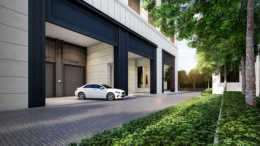 ภาพบรรยากาศจำลองทางออกที่จอดรถระบบ Auto Parking