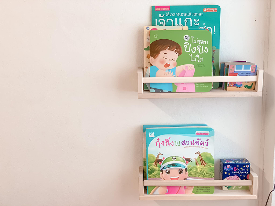 ที่ผนังติดชั้นวางหนังสือลายไม้ จาก Shopee ชิ้นละ 169 บาท