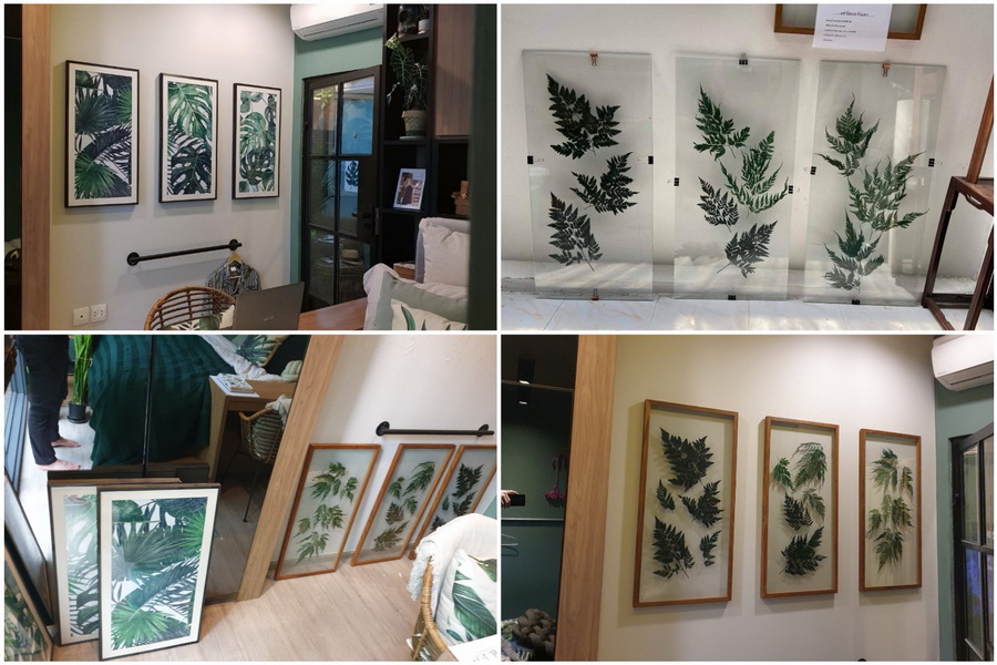 กรอบรูปแขวนผนัง(12) เดิมทีแล้วจะเป็นภาพที่ผมซื้อจากในเน็ตมาแล้วปรับแต่งสีกับขนาดแล้วเอาไปปริ้นและเข้ากรอบที่สั่งทำมา ซึ่งกรอบรูปใหม่นี้จะไม่ใช่ภาพปริ้น หรือภาพวาดลายใบไม้แต่อย่างใด แต่จะเป็นภาพที่ใส่ใบไม้จริงๆไว้เลยครับ หลายคนอาจสงสัยมันจะอยู่ได้นานเขียวอย่างนี้ตลอดมั้ย