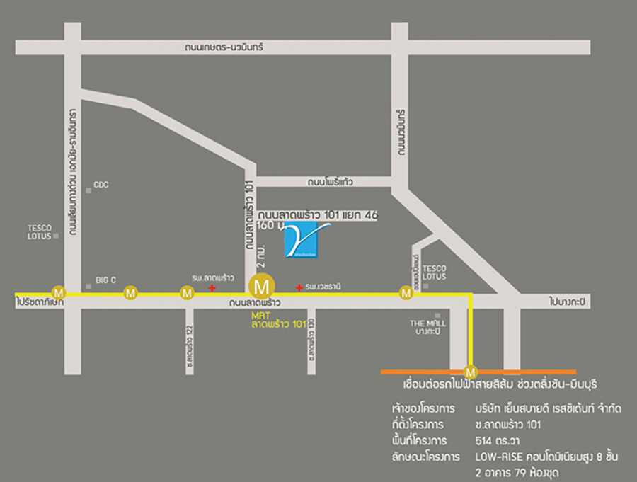 เพียง 5 นาที จากสถานีรถไฟฟ้าสายสีเหลือง สถานีลาดพร้าว 101 เชื่อมต่อทุกเส้นทางได้อย่างสะดวก ใกล้ถนนเส้นเลียบด่วนรามอินทรา และ ถนนเกษตร – นวมินทร์ เป็นเส้นทางลัดไป ห้าง CDC โดยวิ่งจากซอย 101 เข้าสู่ ซอย ลาดพร้าว 87 ได้