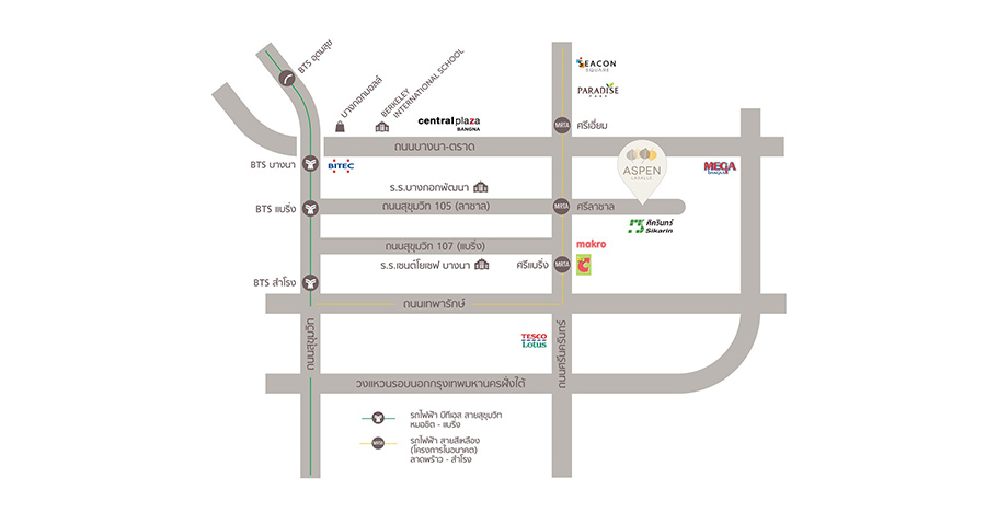 ที่สุดของความสะดวกสบาย ทำเลติดถนนใหญ่ ต้นบางนาตราด เชื่อมต่อเส้นหลักทั้งบางนา ศรีนครินทร์ สุขุมวิท กาญจนาภิเษก ใกล้ทางขึ้นทางด่วนบูรพาวิถี เชื่อมต่อการเดินทางด้วย BTS สายสีเขียวเข้ม สถานีบางนา และ MRT สายสีเหลือง สถานีศรีเอี่ยม นอกจากนี้ยังมีบริการรถรับส่ง Shuttle Service ให้แก่ผู้พักอาศัยอีกด้วย