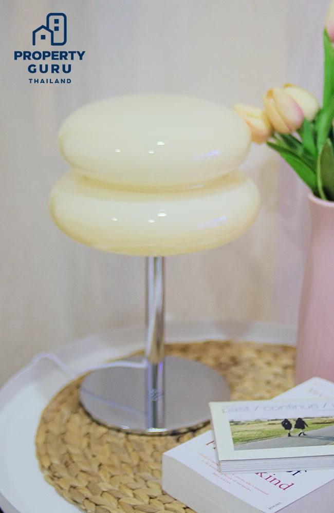 โคมไฟแก้วหรือที่หลายๆ คนเรียกว่า “โคมไฟทาร์ตไข่” ได้ฟีลคาเฟ่โฮมมี่สุดอบอุ่น ตัวโป๊ะทำจากแก้วส่วนตัวฐานเป็นเหล็กเงาวับ แสงไฟปรับระดับได้ 3 ระดับ มีสีสันสดใสให้เลือกหลากหลาย ไม่ว่าจะ สีเหลืองและสีชมพูพาสเทล สีขาวสไตล์มินิมอล และสีส้มสดใส
