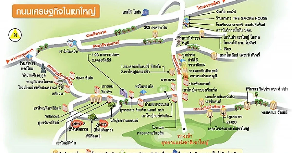 "ประชาชาติธุรกิจ" สำรวจการลงทุนอสังหาฯในเขาใหญ่ บริเวณถนน 3 สายหลัก ได้แก่ 1) ถนนธนะรัชต์ ที่เชื่อมจากถนนมิตรภาพไปสิ้นสุดที่ด่านอุทยานแห่งชาติเขาใหญ่ 2) ถนนผ่านศึก-กุดคล้า เส้นทางลัดเชื่อมต่อถนนมิตรภาพ-ถนนธนะรัชต์ และ 3)ถนนมุ่งหน้าไปวังน้ำเขียว ที่เชื่อมต่อจากถนนธนะรัชต์บริเวณก่อนถึงด่านอุทยานฯเขาใหญ่ พบว่ามีโครงการอสังหาฯรวมกันอย่างน้อยประมาณกว่า 30-40 โครงการ ราคาขายบ้าน-คอนโดฯตั้งแต่ยูนิตละกว่า 1.6-30 ล้านบาท