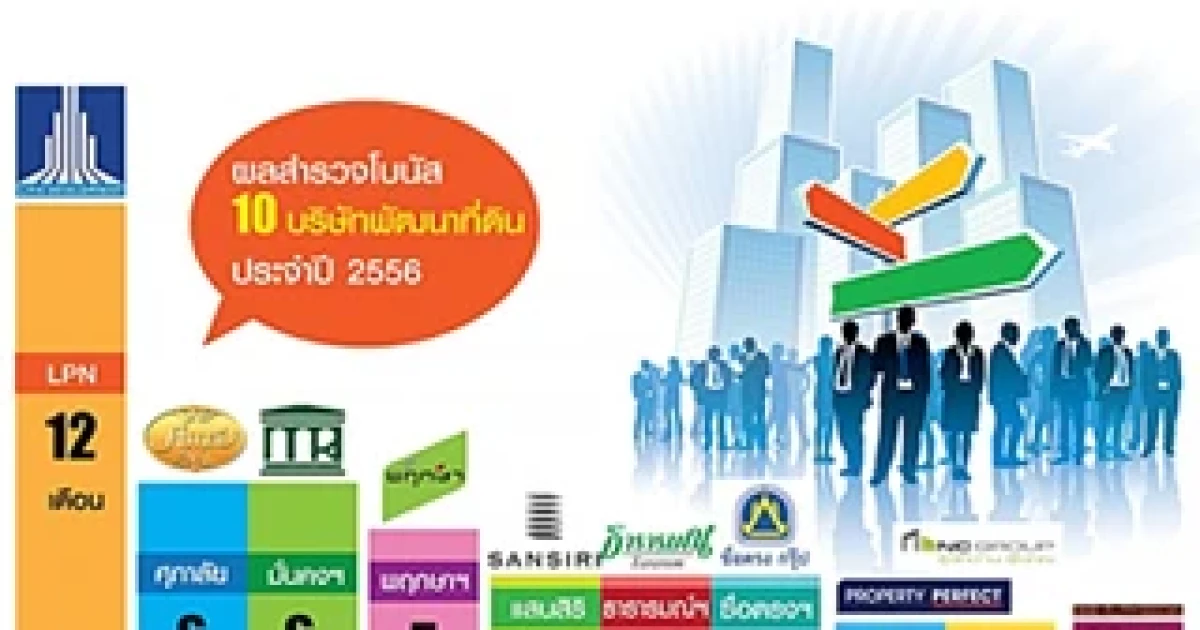 ทั้งนี้ผลสำรวจในจำนวนผู้ประกอบการ 10 ราย ได้แก่ บมจ.พฤกษา เรียลเอสเตท, บมจ.แสนสิริ, บมจ.แอล.พี.เอ็น.ดีเวลลอปเมนท์, บมจ.พร็อพเพอร์ตี้ เพอร์เฟค, บมจ.มั่นคงเคหะการ, บมจ.เอ็น.ซี.เฮ้าส์ซิ่ง, บมจ.ธารารมณ์ เอ็นเตอร์ไพรส์, บมจ.ธนาสิริ, บจ.วิวัฒน์ พรอพเพอร์ตี้, บจ.ซื่อตรง พร็อพเพอร์ตี้ พบว่ามีแนวโน้มจ่ายโบนัสประจำปี 2556 เฉลี่ยตั้งแต่ 1-12 เดือน โดยคาดว่า บมจ.แอล.พี.เอ็น.ฯ จะเป็นบริษัทที่มีอัตราจ่ายโบนัสสูงที่สุด เมื่อคิดจากจำนวนเท่าของเงินเดือน