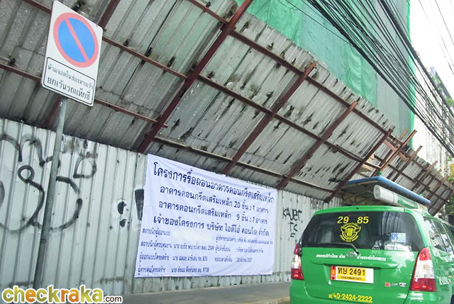 รั้วสีเขียวๆ คือทางเข้าที่ดินโครงการ อยู่ติด MRT สถานีสุขุมวิท