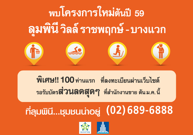 บริษัท แอล.พี.เอ็น. ดีเวลลอปเมนท์ จำกัด (มหาชน) หรือ LPN เตรียมเปิดตัวคอนโดมิเนียมโครงการใหม่ "ลุมพินี วิลล์ ราชพฤกษ์-บางแวก (Lumpini Vill Ratchaphruek-Bang Waek)" ต้อนรับปี 2559 พร้อมเปิดให้ลงทะเบียนรับส่วนลดพิเศษได้แล้ววันนี้