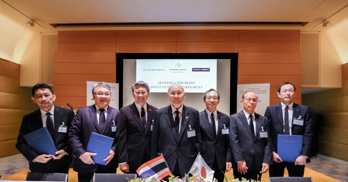 อีกหนึ่งความร่วมมือครั้งสำคัญระหว่างบริษัทพัฒนาอสังหาริมทรัพย์ไทยและญี่ปุ่น เมื่อกลุ่มบริษัท พร็อพเพอร์ตี้ เพอร์เฟค จำกัด (มหาชน) โดย นายชายนิด อรรถญาณสกุล ประธานเจ้าหน้าที่บริหาร และ บริษัท แกรนด์ แอสเสท โฮเทลส์ แอนด์ พรอพเพอร์ตี้ จำกัด (มหาชน) โดย นายวิทวัส วิภากุล กรรมการและกรรมการบริหาร ได้ร่วมลงนามในสัญญาความร่วมมือพัฒนาโครงการอสังหาริมทรัพย์ร่วมกับ นายอาคิระ อิชิคาวะ ประธานบริษัท ซูมิโตโม ฟอเรสทรี จำกัด และ นายทัตสึโอะ อิวางาคิ กรรมการผู้จัดการ บริษัท ซูมิโตโม ฟอเรสทรี (สิงคโปร์) จำกัด โดยมี นายบรรสาน บุนนาค เอกอัครราชทูต ณ กรุงโตเกียว พร้อมด้วย นายพิชัย รัตตกุล ร่วมเป็นสักขีพยาน พิธีลงนามจัดขึ้นที่สถานเอกอัครราชทูตไทย ณ กรุงโตเกียว ญี่ปุ่น