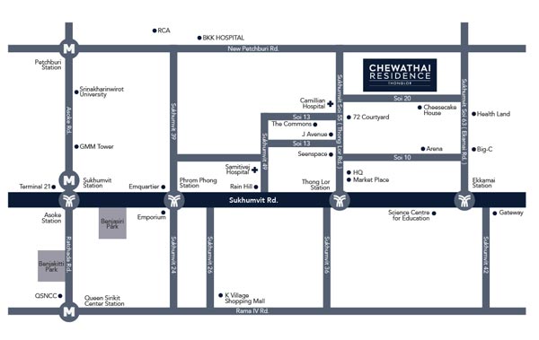 แผนที่โครงการ คอนโด ชีวาทัย เรสซิเดนซ์ ทองหล่อ