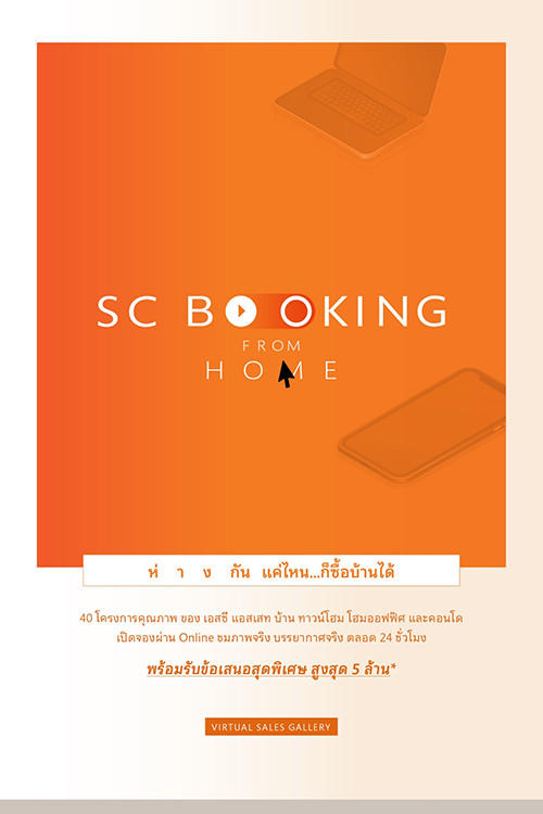 นายณัฐกิตติ์ ศิริรัตน์ Head of Marketing บริษัท เอสซี แอสเสท คอร์ปอเรชั่น จำกัด (มหาชน) ผู้นำในการเป็น Living Solutions Provider เปิดเผยว่า บริษัทได้พลิกกลยุทธ์รับสถานการณ์ COVID-19 ด้วยการเปิดช่องทางขายใหม่ผ่านแพลตฟอร์มออนไลน์ สร้างประสบการณ์สุดล้ำแก่ลูกค้าเรียลดีมานด์ผ่าน SC BOOKING FROM HOME ด้วยแนวคิด ห่างกัน แค่ไหน... ก็ซื้อบ้านได้ โดยสามารถจองบ้าน ทาวน์โฮม โฮมออฟฟิศ และ คอนโดมิเนียมใกล้รถไฟฟ้า กว่า 40 โครงการคุณภาพ ที่มาพร้อมข้อเสนอพิเศษสูงสุด 5 ล้านบาท ผ่านช่องทางออนไลน์แบบเรียลไทม์ได้ตลอด 24 ชั่วโมง พร้อมสามารถชมบ้านแปลงจริง บรรยากาศจริง ที่พร้อมเข้าอยู่ (Ready to move) ทุกโครงการ