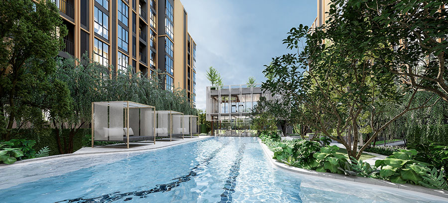 นอกจากนี้ก็ยังคงมีการออกแบบเพิ่มพื้นที่สีเขียวไว้รายรอบโครงการ ทำให้เกิดความร่มรื่นอีกด้วย