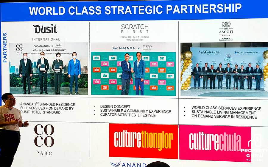 ดังนั้น อนันดาฯ จึงเร่งมอบประสบการณ์ที่ดีในชีวิตให้กับลูกค้า โดยการพัฒนาคอนโดมิเนียมผสมผสานการบริการต่างๆ ที่มีมาตรฐานระดับ World class ไม่ว่าจะเป็นความร่วมมือกับ ดุสิตธานี ครั้งแรก! กับ BRANDED RESIDENCE ของอนันดาฯ เปิดประสบการณ์การบริการสุดประทับใจ ด้วยมาตรฐานระดับห้าดาวจากโรงแรมดุสิตธานี การจับมือกับ SCRATCH FIRST (FROM THE CREATORS OF WONDERFRUIT) ในการร่วมกันพัฒนาแบรนด์ CULTURE ซึ่งเป็นแบรนด์ใหม่ ของที่อยู่อาศัยแนวคิดใหม่ ให้ความสำคัญในเรื่องการอยู่อาศัยร่วมกับธรรมชาติอย่างยั่งยืน เพื่ออนาคตที่ดีขึ้น เป็นชุมชนของคนเมืองเผ่าพันธุ์ใหม่ที่มีความคิดอยากจะเปลี่ยนแปลงสังคมให้ดีขึ้น ทั้งทำเล ทองหล่อ และ จุฬา
