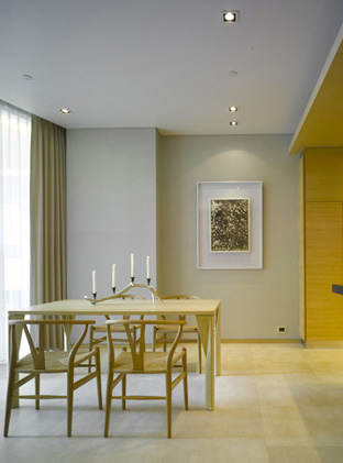 - แนวแผ่นสเตนเลสที่ยื่นออกมาจากอาคารอย่างสวยงามแปลกตา ทำให้อาคารมีรูปลักษณ์แตกต่างกันไปในแต่ละมุมมอง อีกทั้ง กระจกหน้าต่างบานสูงจากพื้นจรดเพดานยังทำให้แสงธรรมชาติส่องเข้ามาได้อย่างเต็มที่และทำให้ผู้อยู่อาศัยเห็นทิวทัศน์ได้อย่างชัดเจน