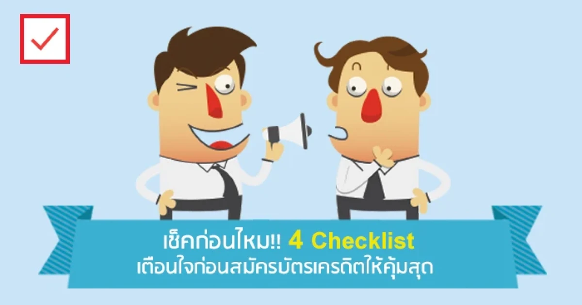 เพื่อให้การ "สมัครบัตรเครดิต" เป็นไปอย่างคุ้มค่ามากที่สุด เราจะต้องเช็คอะไรบ้าง? ดูอะไรก่อน? วันนี้ CheckRaka ขอเสนอ 4 Checklist มาเตือนใจเพื่อนๆ ก่อนสมัครบัตรเครดิตให้ได้ประโยชน์สูงสุดกันนะคะ