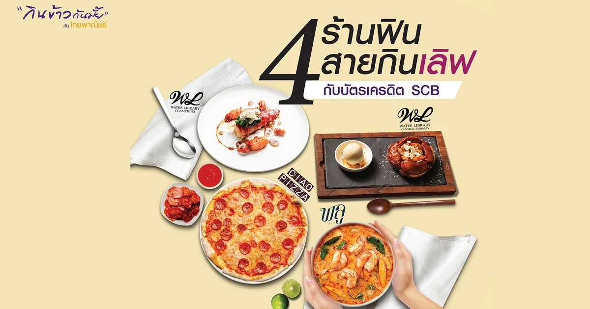 สิทธิพิเศษสำหรับผู้ถือบัตรเครดิตไทยพาณิชย์ ที่ร้านเชา พิซซ่า, พลู, วอเตอร์ ไลบรารี่ และวอเตอร์ ไลบรารี่ บราสเซอรี