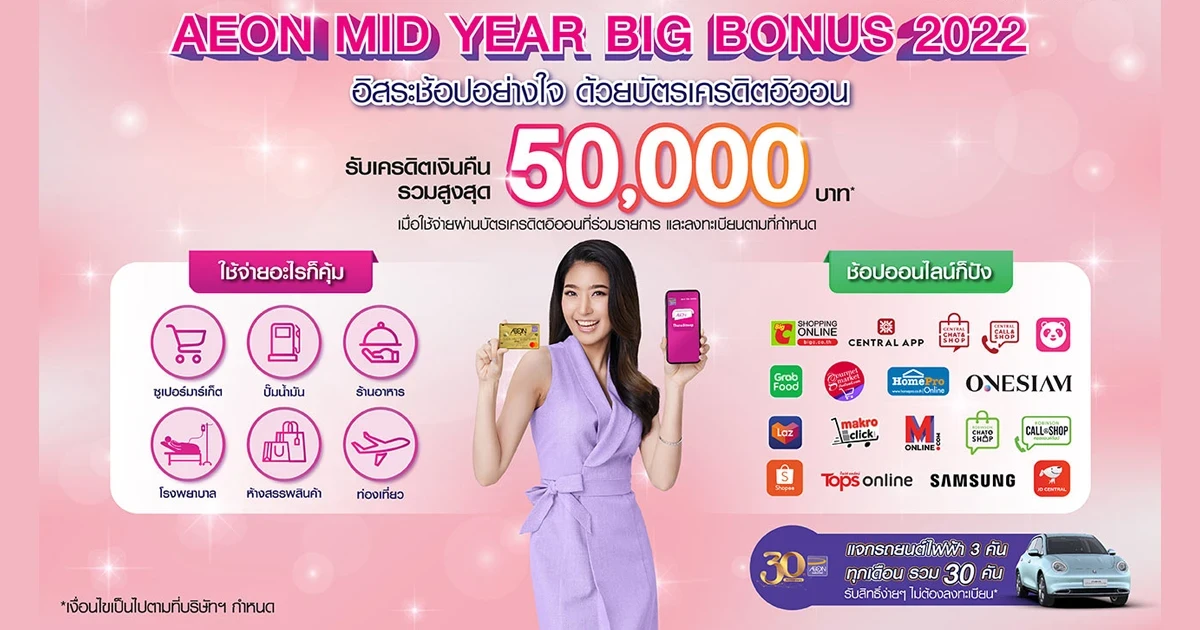 - โปรดตรวจสอบเงื่อนไขและรายละเอียดเพิ่มเติม ณ จุดขายและสื่อประชาสัมพันธ์อื่นของบริษัทผ่านทาง www.aeon.co.th
