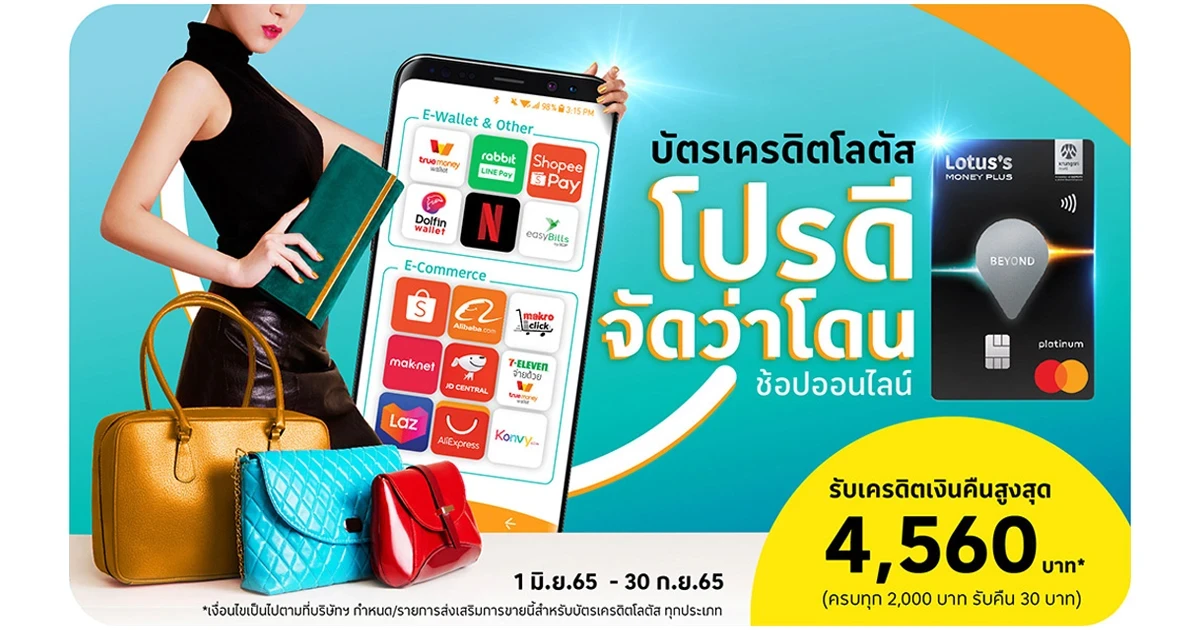 ช้อปออนไลน์ โปรดีจัดว่าโดน ผ่านบัตรเครดิตโลตัส รับเครดิตเงินคืนสูงสุด 4,560 บาท*