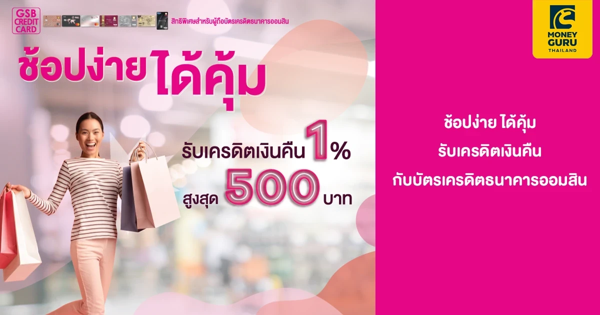 สิทธิพิเศษสำหรับผู้ถือบัตรเครดิตธนาคารออมสิน รับเครดิตเงินคืนสูงสุด 500 บาท เมื่อใช้จ่ายครบตามเงื่อนไขที่ธนาคารกำหนด ระหว่างวันที่ 1 พฤศจิกายน 2565 – 31 ธันวาคม 2565
