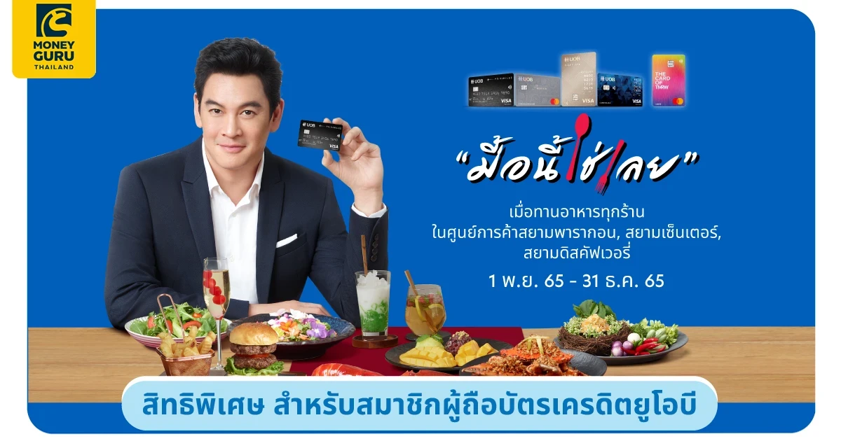 - รายการส่งเสริมการขายนี้ ระหว่างวันที่ 1 พ.ย. 65 – 31 ธ.ค. 65 เฉพาะผู้ถือบัตรเครดิตยูโอบีที่ออกในประเทศไทยเท่านั้น (ยกเว้นบัตรเครดิตเพื่อธุรกิจ, บัตรเครดิตยูโอบี โยโล่ แพลทินัม และบัตรเครดิต TMRW) โดยผู้ถือบัตรจะต้องคงสถานะการเป็นสมาชิกบัตรและไม่ผิดนัดชำระหนี้จนถึงวันที่ธนาคารเครดิตเงินคืนเข้าบัญชีบัตรเครดิต