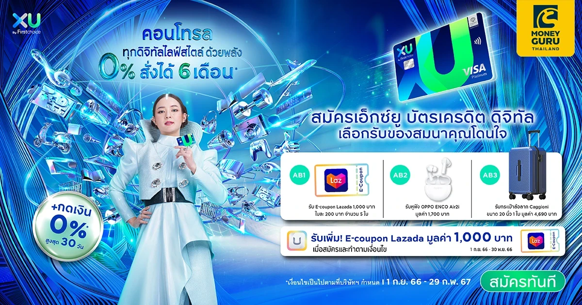 สมัครเอ็กซ์ยู บัตรเครดิต ดิจิทัล เลือกรับของสมนาคุณได้ตามไลฟ์สไตล์คุณ และเบิกถอนเงินสด ดอกเบี้ย 0% นานสูงสุด 30 วัน เมื่อสมัครบัตรฯ และมีการใช้จ่ายครบตามเงื่อนไข