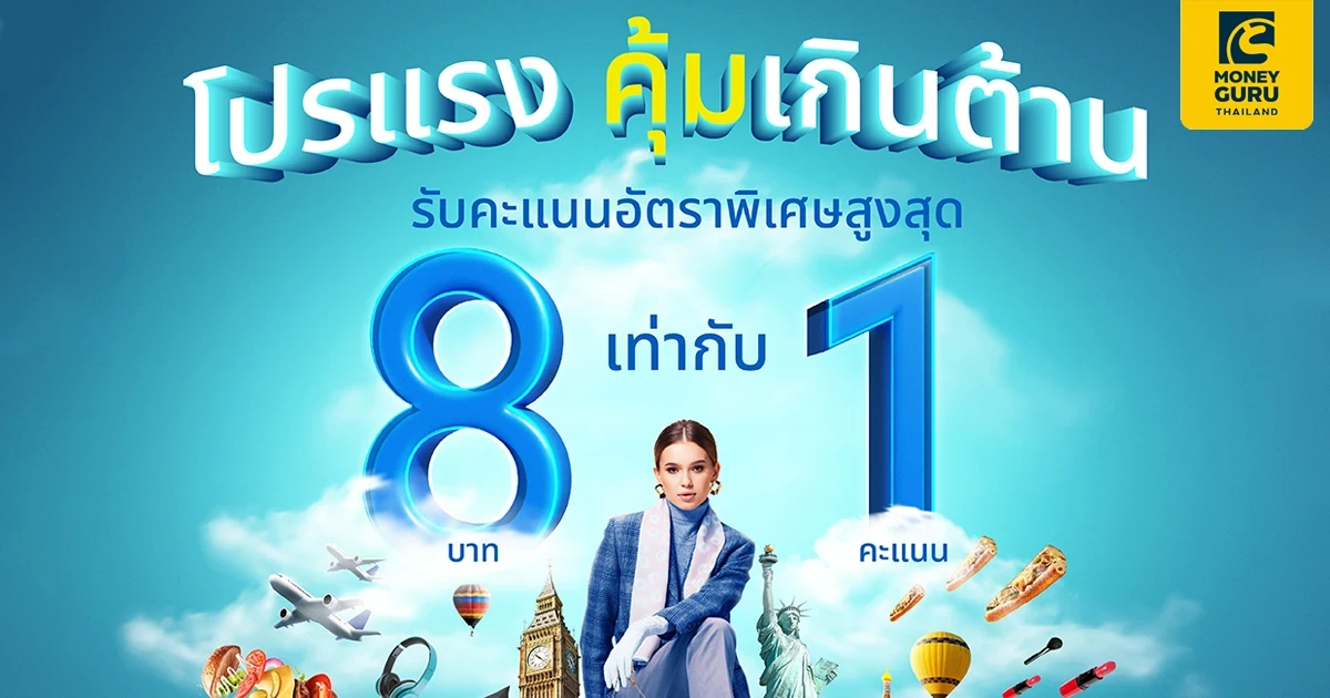 - สำหรับยอดใช้จ่ายต่างประเทศสะสมต่อเดือนครบทุก 30,000 บาท รับคะแนนสะสมอัตราพิเศษ 8 บาท = 1 คะแนน (คะแนนสะสมเพิ่มจะคำนวณให้สำหรับยอดใช้จ่ายต่างประเทศรวมไม่เกิน 120,000 บาท/ผู้ถือบัตรหลัก/ตลอดรายการ)