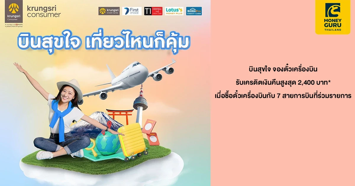 เที่ยวใกล้ได้คุ้มเมื่อซื้อบัตรโดยสาร 7 สายการบินที่ร่วมรายการ รับเครดิตเงินคืนสูงสุด 2,400 บาท* เมื่อชำระด้วยบัตรเครดิตกรุงศรี, บัตรเครดิตกรุงศรีเฟิร์สช้อยส์ วีซ่า แพลทินัม, เอ็กซ์ยู บัตรเครดิต ดิจิทัล, บัตรเครดิต เซ็นทรัล เดอะวัน, ซิมเพิล วีซ่า คาร์ด และบัตรเครดิตโลตัส