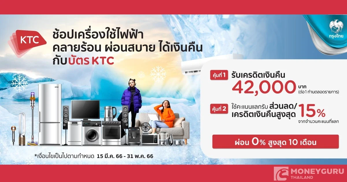 ช้อปคลายร้อน...ผ่อนสบาย 0% นานสูงสุด 10 เดือน ได้เงินคืน กับบัตรเครดิตเคทีซี ณ ร้านเครื่องใช้ไฟฟ้าที่ร่วมรายการ ภายใต้ MCC 1711, 5732, 5722, 5997, 5111