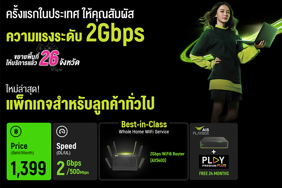 AIS พัฒนาไปอย่างไม่หยุดยั้ง ปัจจุบันมาพร้อมกับอินเทอร์เน็ตที่มีความเร็วในการดาวน์โหลดสูงถึง 2 Gbps เลยทีเดียว อีกทั้งยังมีแพ็กเกจที่รองรับการใช้งานของผู้คนหลากหลายรูปแบบ ไม่ว่าจะเป็น อินเทอร์เน็ตที่รองรับการ Work From Home, การเรียนออนไลน์, การขายของออนไลน์ และการสตรีมเกม เป็นต้น มีความเร็วให้เลือกหลากหลายระดับ มาพร้อมกับราคาแพ็กเกจแบบรวมกับกล่อง และแพ็กเกจที่รวมกับผู้ใช้งานเครือข่ายโทรศัพท์ด้วย เลือกดูได้ตามความเหมาะสมกันได้เลยค่ะ