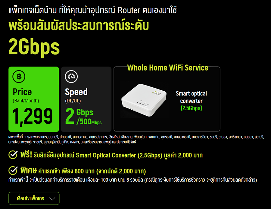 แพ็กเกจและโปรโมชั่นอินเทอร์เน็ตบ้าน ของผู้ให้บริการอินเทอร์เน็ตในประเทศไทย