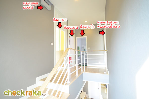 ที่โถงบันได้บ้านชั้นบนกว้างและโปร่งโล่งด้วยความสูงจากพื้นถึงเพดานที่ 2.80 เมตร