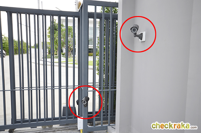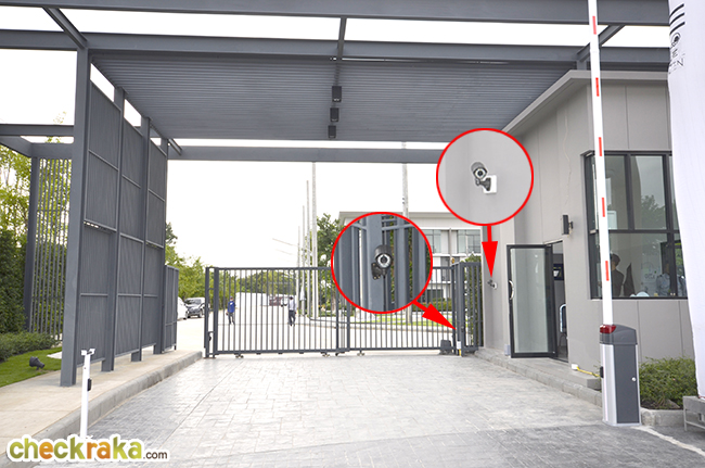 ตรงซุ้มทางเข้าจะมี CCTV 2 ตัว ถ่ายป้ายทะเบียนและถ่ายเจาะคนขับรถค่ะ ชั้นสุดท้ายคือประตูเหล็กของทางโครงการ