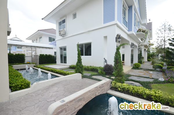 - แบบบ้านและวัสดุ - แบบบ้าน และ Lay Out ภายในโครงการมีให้เลือกถึง 3 แบบ ตัวฟังก์ชั่นบ้านสามารถรองรับสมาชิกในครอบครัวได้หลายคนเพราะบ้านทั้ง 3 แบบมีห้องนอนรองรับ 3 ห้องนอนเท่ากัน แตกต่างกันที่ขนาดของห้อง และจำนวนห้องน้ำเพราะบ้านที่ไซส์เล็กสุดของที่นี่มีห้องน้ำให้ 2 ห้อง สำหรับพื้นที่ด้านข้างบ้านมีให้พอสมควร ยิ่งหากบ้านหลังไหน ได้พื้นที่มากหน่อย แทบจะสร้างเรือนรับรองอีกหลังได้เลย จุดเด่นหลักๆ คือฟังก์ชั่นบ้านที่ให้มาครบ พร้อมกับดีไซน์ ทันสมัยแบบยุโรป ทำให้บ้านดูอบอุ่นน่ารัก วัสดุภายในบ้าน เช่น สุขภัณฑ์ใช้ Bathroom Design และ Cotto พื้นชั้นล่างแกรนิตโต้ 60x60 ซ.ม. พื้นชั้นบนเป็นลามิเนตหนา 8 มม. บานประตูภายในเป็นไม้ HDF ประตูห้องน้ำกับโรงจอดรถเป็น UPVC กรอบประตู หน้าต่างอลูมิเนียม Powder Coat สีขาว และกระจกเขียวตัดแสงทั้งหลัง โดยรวมแล้ววัสดุและเกรดของวัสดุที่จัดมาให้อยู่ในเกณฑ์ที่ดี
