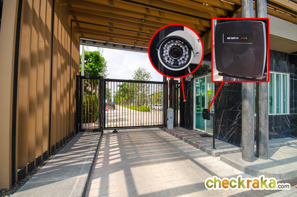ซุ้มประตูมี รปภ. ไม้กั้นกระดก CCTV ที่สแกนคีย์การ์ดเข้า-ออกโครงการ และประตูบานเลื่อนเหล็ก มีห้องสำหรับรปภ.