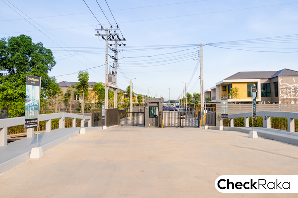 ที่ซุ้มประตูทางเข้าโครงการมีไม้กั้นกระดก CCTV เข้า-ออกด้วยระบบ Easy Pass และมีห้องสำหรับ รปภ.